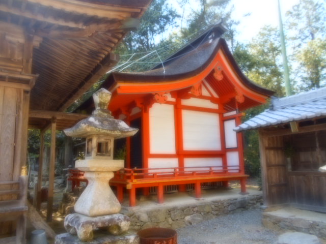 | 小野天満神社 三田市小野字森ノ本709 | 履屋の中に二社合祀されている向かって左側の社殿が、一間社流造、柿葺き県重要文化財である。 妻組・肘木・蟇股に、室町時代の建築様式を色濃く残している。 |