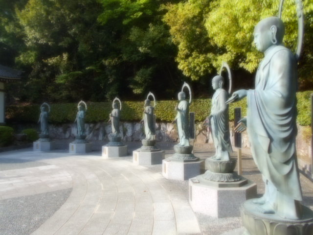 本尊 薬師如来 白雉2年(651年)、法道仙人による開基と伝えられる。後に、人皇65代天皇であった花山法皇が西国33ヶ所観音霊場を再興の後、当山を終焉の地とされる。境内には御廟所があり、西国札所別格霊場として尊崇を受けている。 境内からの眺望は素晴らしく「有馬富士 麓の霧は海に似て波かと聞けば、小野の松風」という御詠歌に読まれているとおり、その霧海は幻想的である。 なお、法皇を慕い、京から来た女官たちが女人禁制のため、尼となって山裾に住んだことから、この地を「尼寺(にんじ)」という。琴を弾いて法皇をおなぐさめした坂を「琴弾坂」と呼び、彼女たちの墓は「十二尼妃の墓」として祀られている。 説明板から転載 |