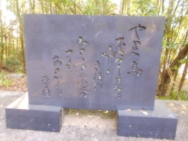 | 歌碑 やまの鳥 木々のしげみに 啼ききほひ みささきの邊の すがしあさかも |