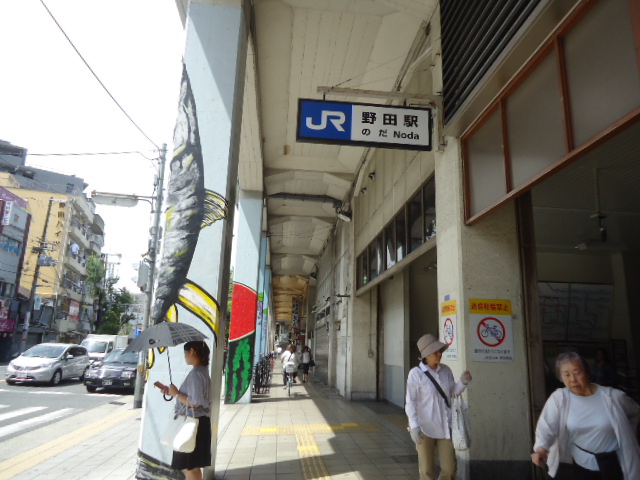 | 10:32 西九条駅。阪神西大阪線は以前ここ止まりの支線だったので、写真のガラス窓が見える2階に線路はあったが、地下鉄千日前線を介して近鉄奈良線とつながった今は、3階を通っている。 この駅で乗り換えて桜島駅まで通勤していた頃とは風景が一変していた。毎日のように立ち寄った飲み屋はどこに行ったのか。 |