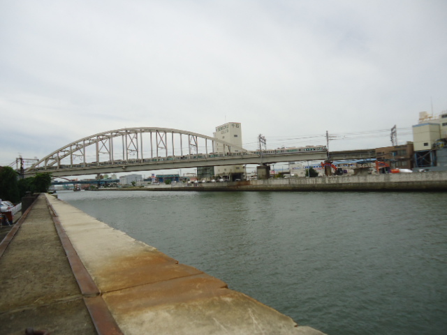 | 11:03 JRの電車が安治川鉄橋を行く。 |