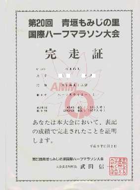 大会名:第20回青垣もみじの里国際ハーフマラソン大会 場所:青垣町 DATE:19978.11.
