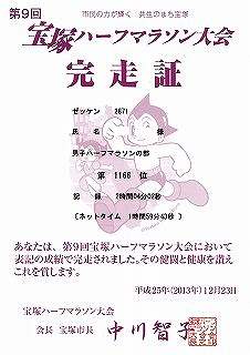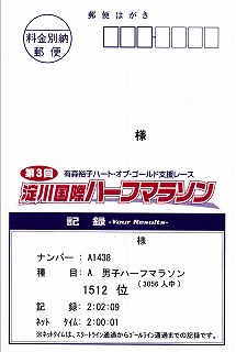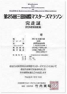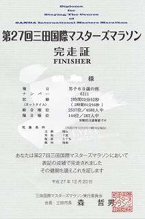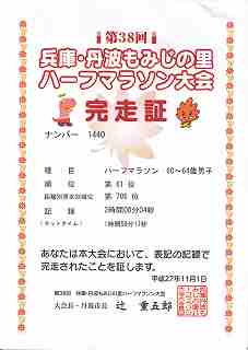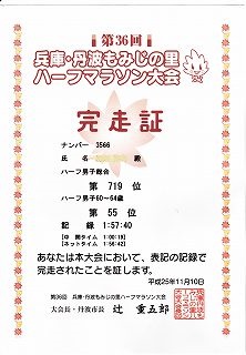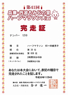 ゴール後の完走証を受け取ったあとで、前学校の教え子に出会った。少し、話したが若いだけにタイムは早い。それに引き換え自分は1km当たり1分ほど遅い。以前はこのくらいの時間で走っていたのが懐かしい。