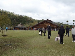 篠山から東に向かい天引峠のトンネルを越え南丹市に入った。園部町の町中を横切り更に北上した。車を替えて、ナビを付けたがこういう時には役立つ。ネットで地図を出して、印刷してきていたがまっ達必要なかった。ナビの言うとおりにハンドルを切っていると目的地に辿りつけれる。日吉町には初めて入った。ダムサイトを登り、湖を眺めている内に目的地に着いた。ダム湖沿いの道から一段上がった高台にある公園が会場だった。