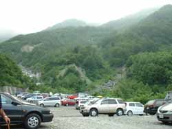 | 猿倉駐車場 | 舞鶴若狭道、27号線、北陸道をを乗り継いで福井県に入る。トンネル出口付近でワンボックスカーの助手席からおばさんが大声で何かこちらの車に向かって叫んでいた。右後ろタイヤがパンク。大きな事故になる前に教えてくれたおかげ。 スペアタイアに替えて、走っていると、今度はパトカーに止められた。何か違反でもと車を止めたが、タイアの取り付け不良を教えてくれただけ。 糸魚川インターで降り、南下。川沿いは雪崩よけのシェルターがずっと連続していた。ここも土木工事でしか地元に貢献する事業が無いのか。 猿倉の駐車場についたのは、16:30ごろ。 荷物を担いで駐車場出発は17:00。予定より2時間送れの出発となった。明るいうちに、白馬尻小屋までたどり着くことが出来るか。 |