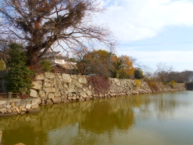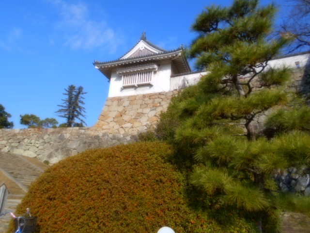 | 右隅は宇喜多秀家期の石垣に被せて造られており、関ヶ原合戦後の小早川秀秋期か、前池田期に築かれたものと見られる。上部は不明門を建てたときに積み足され、中ほどの一部は天保9年(1838)に崩れて修理を受けている。 説明板から |