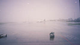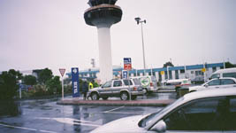 | オークランドの国際線到着ロビーから一旦外に出て、国内線に乗り換えクライストテャーチに向かう。 | ハリケーンで外は大雨。これから一回り小さい飛行機に乗り換えて大丈夫? | ||