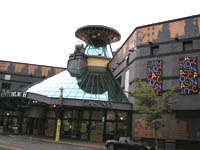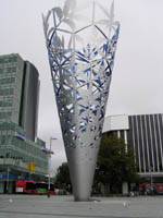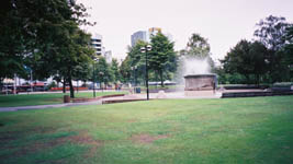 | 夏という感じはまったく無い。噴水が一人さびしく吹き上げていた。 | Botanic庭園内の池と噴水オブジェ。噴水は停まったまま。澱んだままの水が綺麗なままで居続けられるのは何故か。不思議でした。 | ||