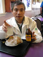 | ホキティカのドライブインで昼食。 ラベルには確かに○△ビールと書いてあったのだが。中身は甘い炭酸水。ガッカリ。 |