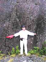 | 氷河を背に。 | 暗闇が迫る中、ワンショット。 | 斜め下方向に走る地層は硬く、氷河が引っかいた痕? | 硬い岩盤の上を流れ落ちる滝。 |