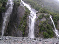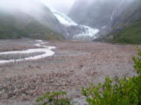 | 豊富な水量に恵まれ、木々の緑色と水の白色との対比が美しかった。 | U字型の谷幅は、氷河の幅を示す。いかに大きな氷河が流れ出たかを示すこの谷。 | 氷河が流れ出るときに、削り取り後にできたU字型の谷。高校の地理で習った”カール”そのもの。 | フランツ・ジョセフのパブ。 ここで食べたマトン、柔らかくまろやかだった。ワインも。 |
