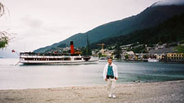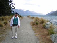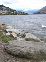 | ワカチプ湖に突き出たクインズタウン庭園の遊歩道で | クイーンズタウンの港で。ワカチプ湖を巡る遊覧船を背に。 | 湖の遥かかなたは別荘地が広がる。 | |