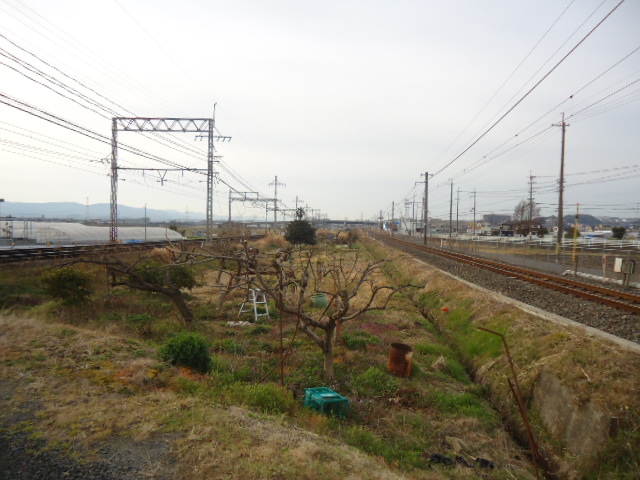| 7:32 下狛(しもこま)駅付近。 この付近約10km、右(JR片町線、単線)と左(近鉄京都線、複線)が平行して走る。 |