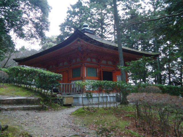 | 御影堂 (重要文化財) 室町時代の建立。宝形(ほうぎょう)造り、檜皮葺。内部の須弥壇(しゅみだん)には弘法大師・良弁・淳祐の遺影(御影)を安置しています。 〜説明板より |
