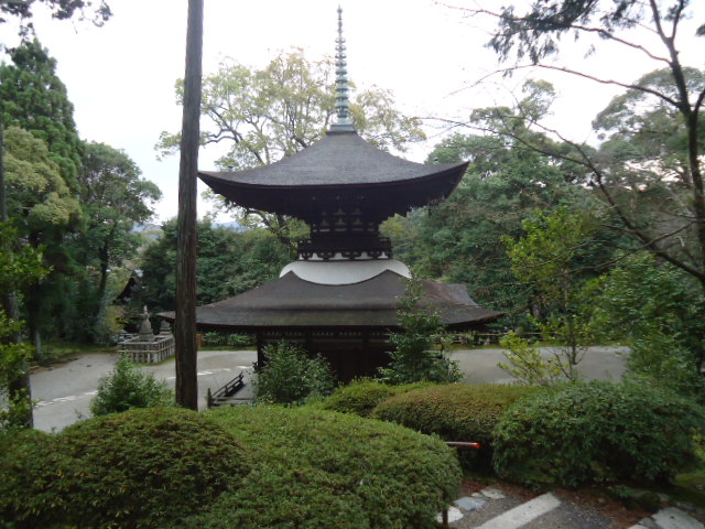 | 多宝塔 (国宝) 下層が方形、上層が円形の平面に宝形造りの屋根をのせた二重の塔です。1194年に建立。上下左右の広がりが極めて美しく洗練され、均整のよくとれた建築です。 また、内部の柱や天井の廻りなどの壁面には、仏像や草花などの極彩色の絵が描かれています。 〜説明板より |