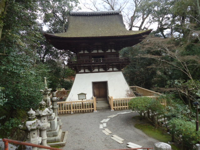 | 鐘楼 (重要文化財) 重層で袴腰を付け、屋根は入母屋造、檜皮葺。昭和28年からの解体修理によってかなり復元され、袴腰は白漆喰壁に、棟は短くなって全体につり合いの取れた美しい姿となりました。 源頼朝の寄進と伝えられていますが、様式や木材の風蝕から鎌倉時代後期のものと考えられています。 〜説明板より |