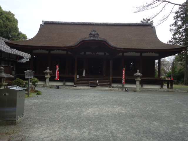 | 圓城寺金堂 国宝 三井寺再興を許可した豊臣秀吉の遺志により、高台院が慶長4年(1599年)に再建した。入母屋造、檜皮葺きの和様仏堂である。なお、移築された旧金堂が延暦寺に現存する。 〜Wikipedia |