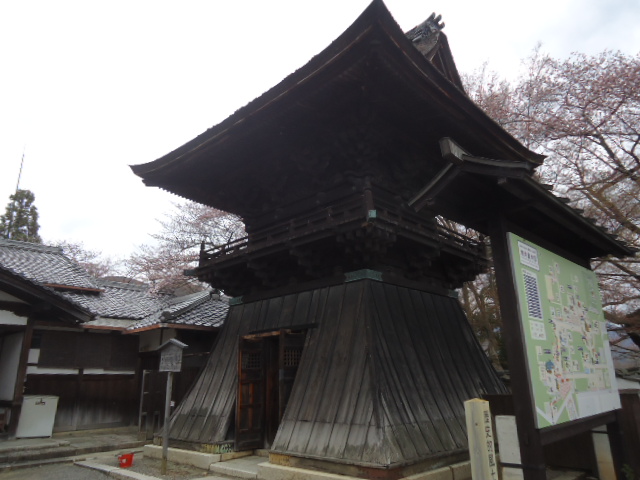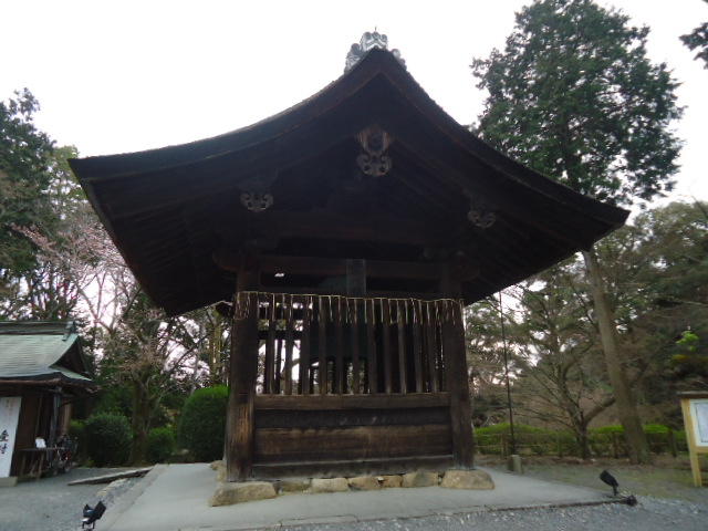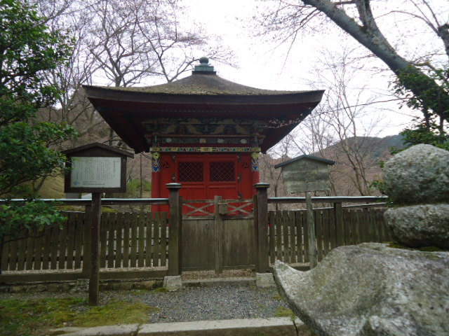 | 鐘楼 重要文化財 金堂の左手前にあり、「三井の晩鐘」で知られる梵鐘を吊る。この梵鐘は慶長7年(1602年)の鋳造で、平等院鐘、神護寺鐘と共に日本三名鐘に数えられている。 〜Wikipedia |