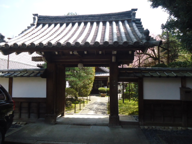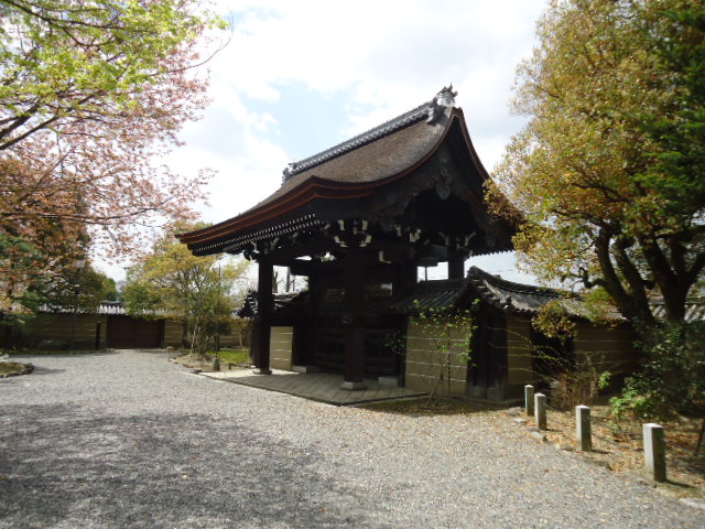 | 南叡山 妙法院門跡 大玄関と唐門 大玄関は元和6(1620)年、東福門院和子(後水尾天皇中宮)入内時に京都御所に造営された殿舎(一部)を移築したものと伝え、三室二十面の襖絵は狩野派による「松之図」で飾られ、建物と共に重要文化財に指定されています。平成22年3月には天皇皇后両階下の行幸啓がなされました。 唐門は、境内の南西隅、東大路に面して建ち、江戸中期の桜町天皇下賜と伝える、いわゆる勅使門で、呼称とは異なり檜皮葺・切妻造り・平入りの四脚門となっています 〜案内板 |