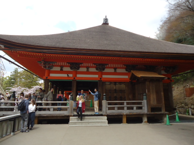 | 奥の院から本堂、轟門、三重塔を望む。散り始めの桜もきれいだった。 |