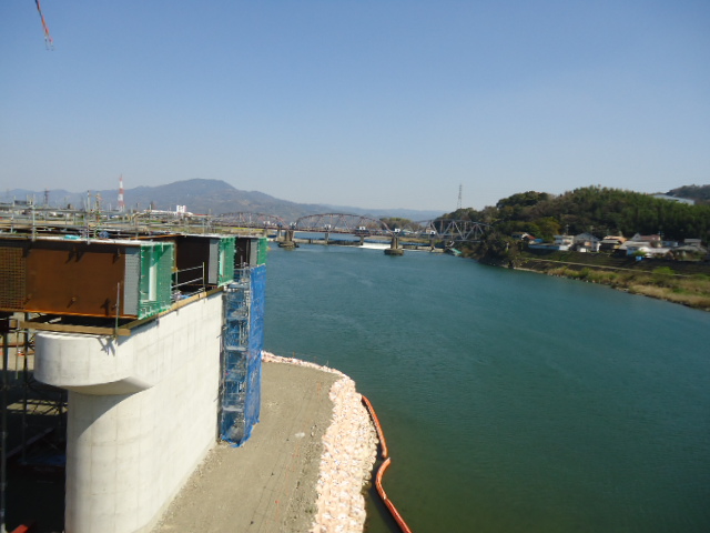 | 紀の川を渡る。それにしても、和歌山県では土木工事多かった。自民党の幹事長と産業通商大臣との出身県であることが大きく影響しているように思えてなら無い。 |