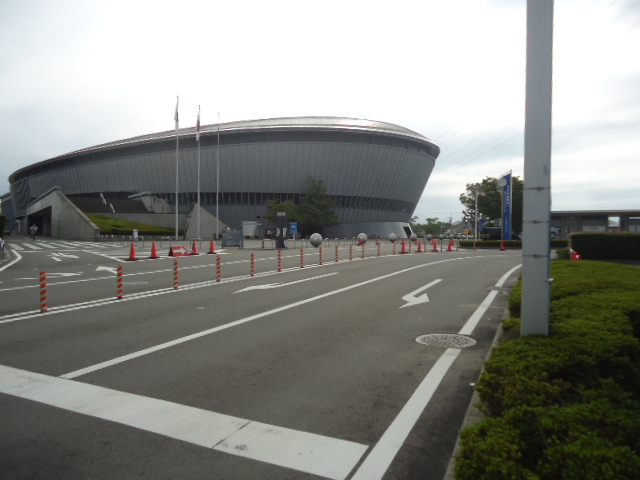 | 和歌山ビッグホエール 国体道路沿いのアリーナ。面積3280u、最大8500人収容。 名前の通り、鯨が潮を吹くように上空へ水を噴き上げる装置があるそうだが、洗濯物が濡れるとの苦情で使われていないとか。 |