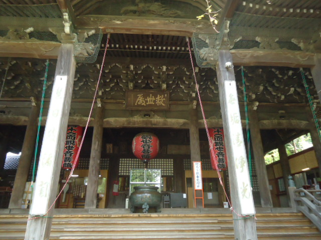 | 本堂 県指定重要文化財 江戸時代・宝歴9年(1759)建立。入母屋造・正面唐破風と千鳥破風・本瓦葺き・九間四面・総欅造り |
