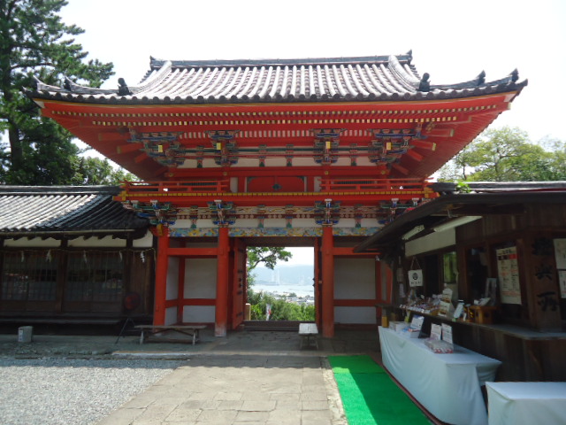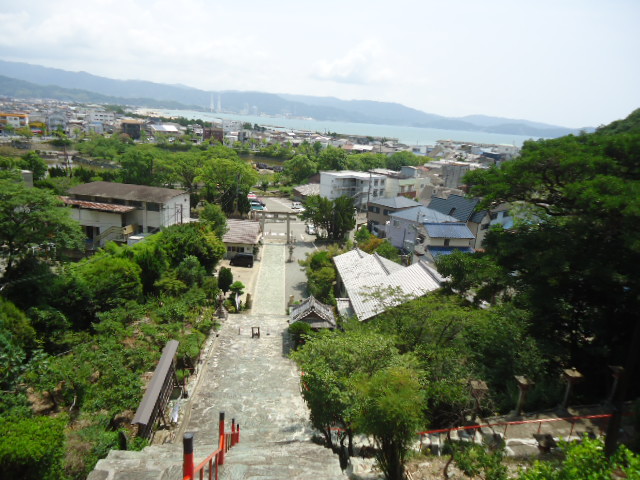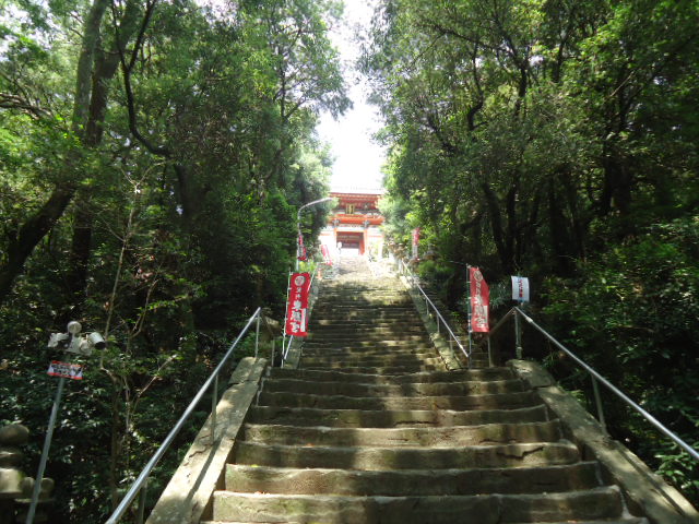 | 和歌浦天満宮 楼門 急峻な石段。登るのも大変だが、降りるときは手摺りなしでは怖くて降りられないほど急な石段。 |