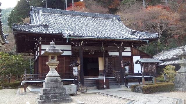 | 観音堂(本堂) 元禄5年(1692)建立、桂昌院の寄進により再建された入母屋造のお堂。本尊千手観音は仁弘法師御作で、西国三十三所観音霊場の第20番札所の本尊です。脇本尊千手観音は源算上人御作で、京都洛西観音霊場の第1番の本尊です。 |