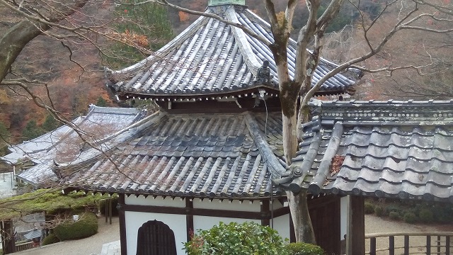 | 手前は経堂。 宝永2年(1705)建立、桂昌院により寄進されました。 傅大士(ふだいし。中国南北朝時代の僧。西暦6世紀)を奉安し、鉄眼版一切経が納められています。 奥に見えるのは多宝塔。 元和7年(1621)建立、国の重要文化財に指定されています。本尊は愛染明王です。 |