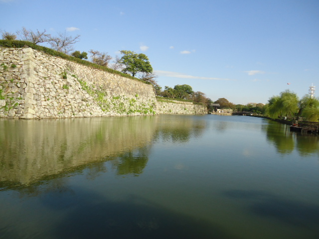 | 青空を写して綺麗な堀と城壁。 |