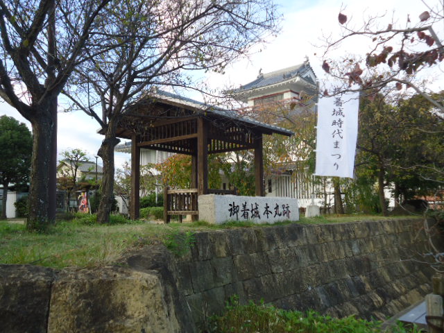 | 御着城本丸跡。 茶臼山城、天川城とも呼ばれ播磨守護赤松氏の家臣小寺氏の居城。1519年に小寺政隆が居城。1578年羽柴秀吉の播磨侵攻で滅亡したとされるが、1441年にはすでに構居が設けられていたとされ、1492から1501年頃には赤松氏の支配の拠点として守護所の機能を持つ城郭として機能していた。 |
