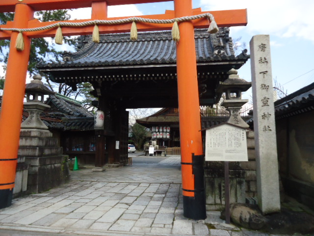 | 下御霊(しもごりょう)神社。 鳥居と神門。 社伝によれば、大同二年(809)不運のうちに亡くなった 伊予親王(桓武天皇の皇子)とその母の藤原吉子の霊をなだめる ために、承和六年(839)に創建されたといわれている。祭神は、 後に、崇道天皇(早良親王)、吉備真備、藤原広嗣、橘逸勢、 文屋宮田麿、火雷天神を加えて八所御霊としている。 当初、出雲路(上京区)にあり、御霊神社の南にあったことから 下御霊神社と呼ばれるようになったといわれ、以後、社地を転々 とし、天正十八年(1590)豊臣秀吉の都市整備により当地に 移転してきた。古来より、京都御所の産土神として崇敬され、享保年間 (1716〜36)霊元天皇は当社に行幸し、宸筆の祈願文を納めている。 本殿は、寛政三年(1791)仮皇居の内侍所を移建したもので、 表門は、旧建礼門を移したものといわれている。 境内の垂加社には、江戸時代の国学者、山崎闇斎を祀る。 〜案内板 |