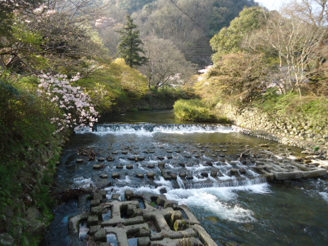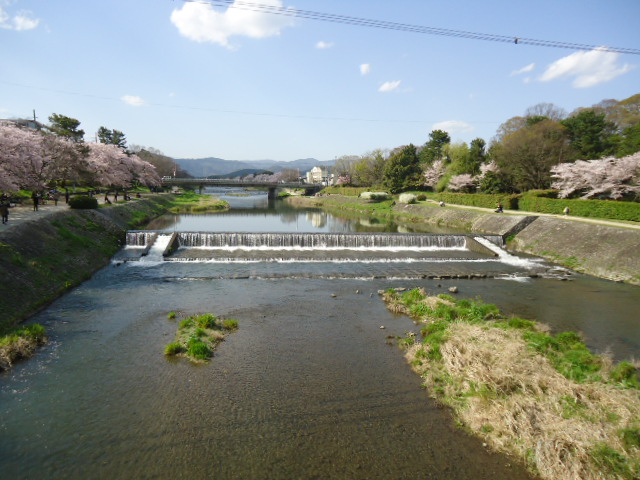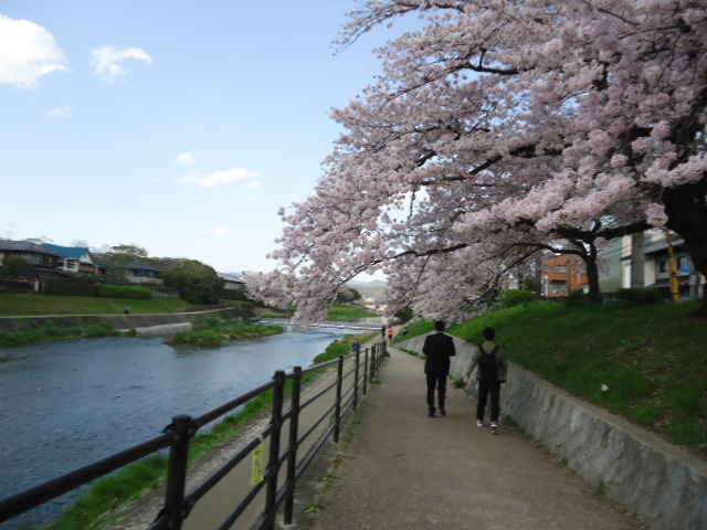 | 高野川を渡り、高野川左岸を上流に向かって進む。ちょうど、ソメイヨシノは満開。 |