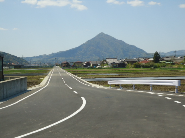 | これから向かう松尾寺はこの三角形の山:青葉山の中腹にある。 |