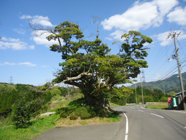 | 松尾寺に向かって青葉山を登ってゆく途中にあった大きな木。 途中で猿の群れに何回も出会った。総計30匹ほどの猿は、逃げるわけではなくじっとコチラを伺っていた。柵があったが猿には何処まで有効か。 |