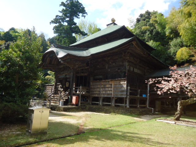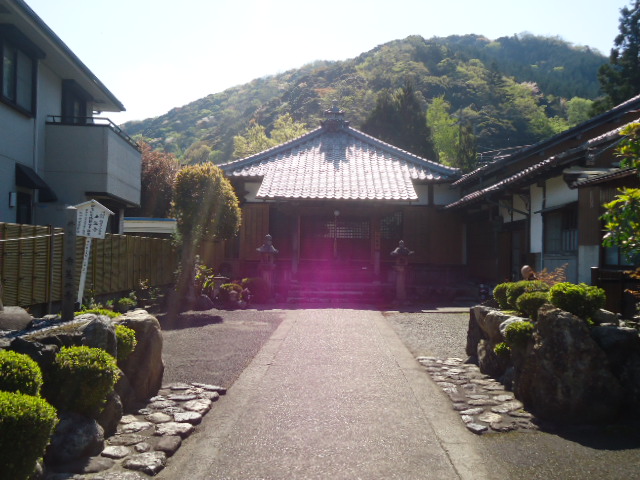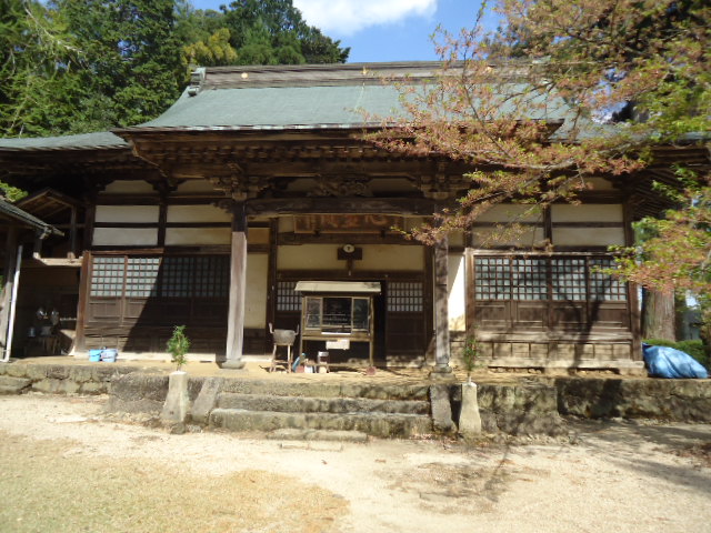 | 8:40 正法寺(しょうほうじ) 本堂。 ここに如意輪観世音菩薩は祀られている。 鎌倉時代(13世紀)の貴重な仏像で、銅造、思惟半跏、57.0cm、重量36.4kg。全体的に塩蝕があり、青く変色が見られるそうである。右手の肘を右ひざに置き、指を軽く頬にあて右足を左ひざに重ね、はすの花を踏むお姿は、端正で穏やか、ふくよか、若々しさがみなぎって気品に富むと評価されている。 実物はその写真より小さいそうである。全体的に丁寧な作りで、飛鳥、奈良朝風の忠実な模古作とされる。 容姿の整い方がさわやかで、若狭地方の制作とは考えがたいとされている。 |