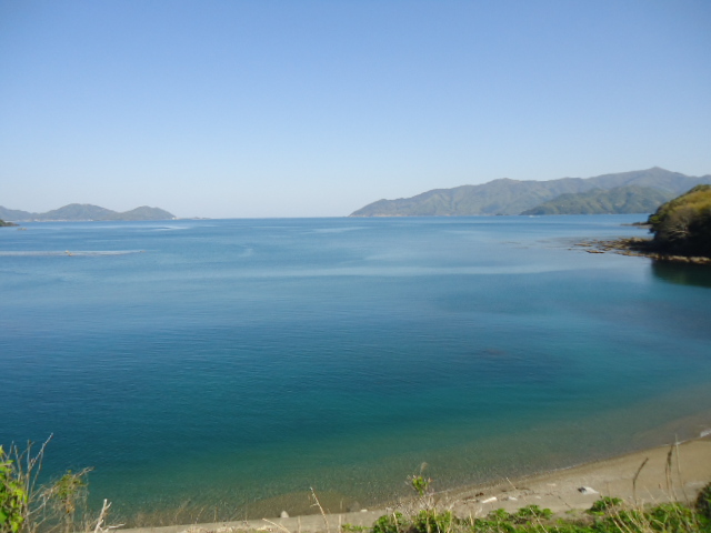 | 10:37 長井浜海水浴場あたりの海。少し緑かかっているのが気になったが、波はなく静か。 |
