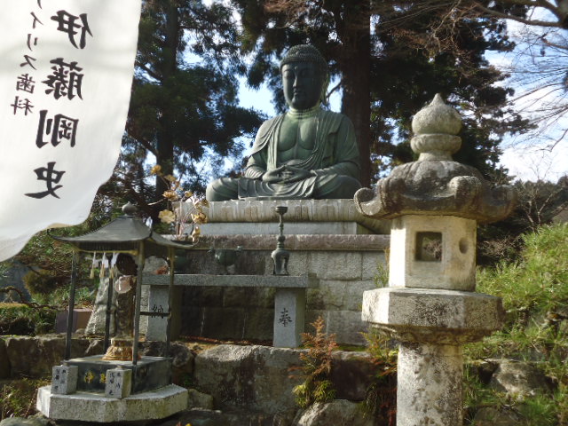 | 濡佛 江戸時代から安置されていたようであるが、第二次世界大戦時に供出され、現存のものは以前のままの姿を映し昭和58年(1983年)に再建されたものである。 「濡佛」の胎内には信徒が書写した写経が納められているという。 |