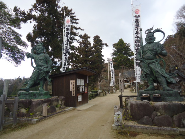 | 仁王像。 下馬を示す石塔があるように、こちらが本当の入口。観音寺城跡側から入ったため、逆になってしまった。これから下る参道が本来のもの。 |