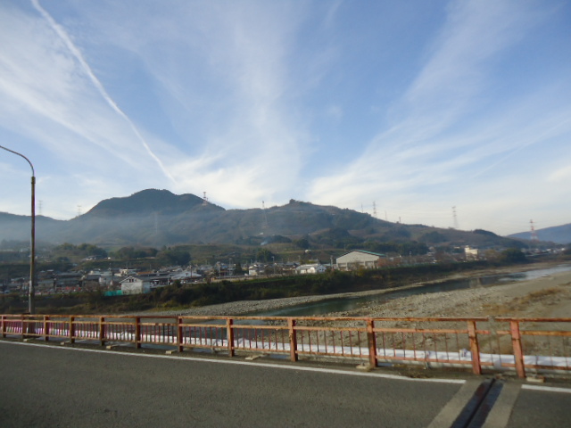 | 10:33 JR高野口駅から九度山駅に向かって紀の川に架かる鉄橋を渡っています。背後の山は高野山。 |