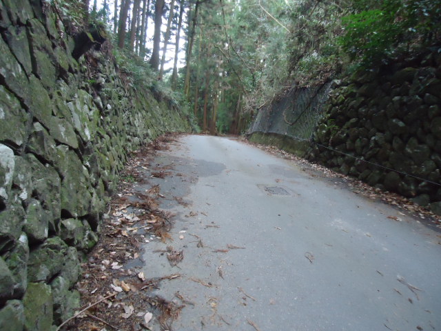| 9:41 石垣を組んだ、昔が偲ばれる大淀古道を行く。 |