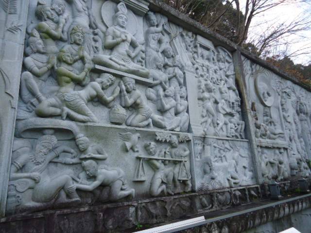 | 天竺渡来の仏伝図レリーフ 「釈迦一代記」 南インド、カルナカタ州カルカラでインドの石に彫刻された。高さ3m、延長50m、重さ300トン |