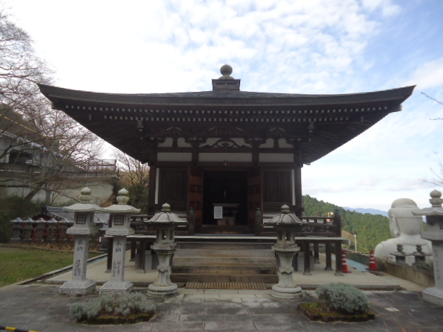 | 14:43 犬飼山・転法輪寺 本堂。 寛永10年作・宝形造・銅板葺・内部折上・小組天女の建物。本尊である弘法大師をお祀りしています。その他にも不動明王、愛染明王、阿弥陀如来・聖天さまの他、裏堂には600体の修行大師像をお祀りしています。 |