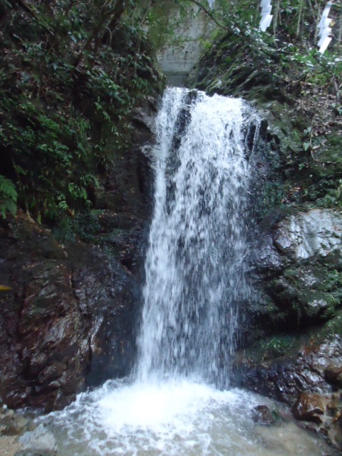 | 9:50 安産の滝 壺坂寺から田口を通り、世尊寺(比曽寺)に通じる街道沿いにあり、昔からお産するものがその滝に打たれると、安産するという言い伝えによって名高い。 案内説明板より |