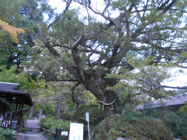 | 榧(かや)の老木 関白豊臣秀吉が久安寺に参拝し、三光神を祀り、月見の茶会を催し東に連なる山並みが美しいと讃え、「榧の木」を記念に手植えしたと伝える。400年も経た老木が毎年実をつける。 説明板から |