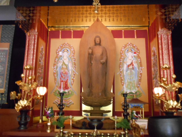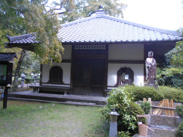 | 遍照殿御影堂 真言密教教祖 空海弘法大師を祀る。空海は、遍照金剛大日如来である。天長年間、数か月留留錫されたと伝える。ここは、その時のお住いの庵の跡。明治にこの堂は伽藍から移築。 聖武天皇をはじめ、ゆかりの天皇のお位牌を祀り、当寺の安泰を祈り、、当寺の安泰を祈願。 説明板から |