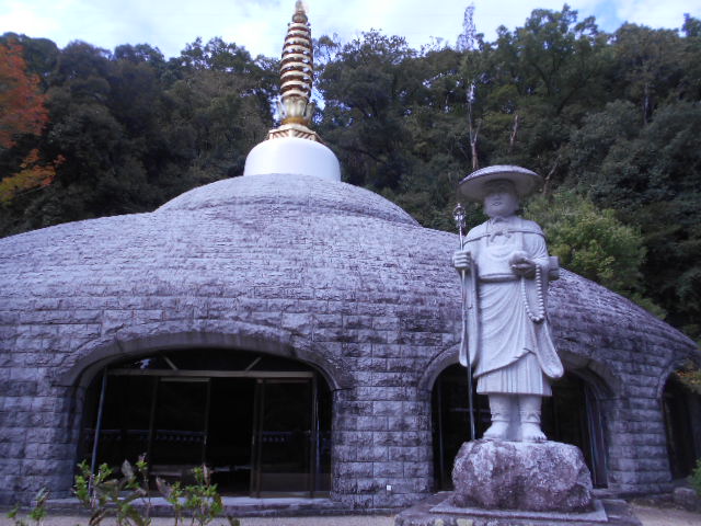 | 仏塔・舎利殿涅槃堂と大師立像 |