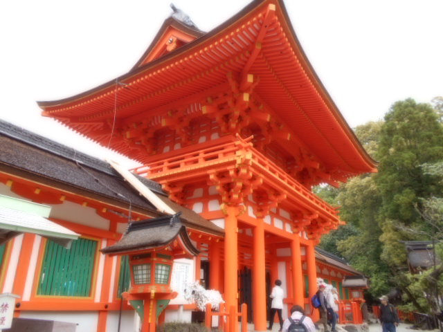 | 上賀茂神社 桜門 2018年3月に修復工事が完了したばかり。朱色が眩しい。 |