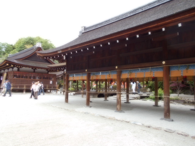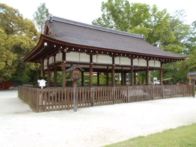 | 上賀茂神社 外幣殿(げへいでん) 法皇、上皇等の御幸摂関賀茂詣での際の著到殿また競馬会神事、葵祭に使用する。また、馬場殿とも称する。 1628年造替 重要文化財 |